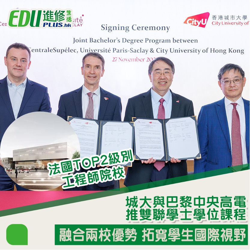 香港城市大學與巴黎薩克雷大學中央理工-高等電力學院(巴黎中央高電)早前簽署合作協議,公布將於2026/27學年推出雙聯學士學位課程,為全球各地向往投身工程專業的年輕學子提供更多選擇。